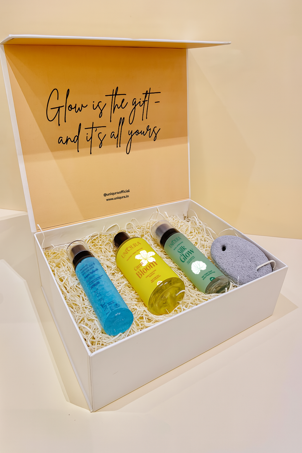 Experience radiant self-care with Glow in a Box, your complete at-home ritual for fresh, glowing skin from head to toe.